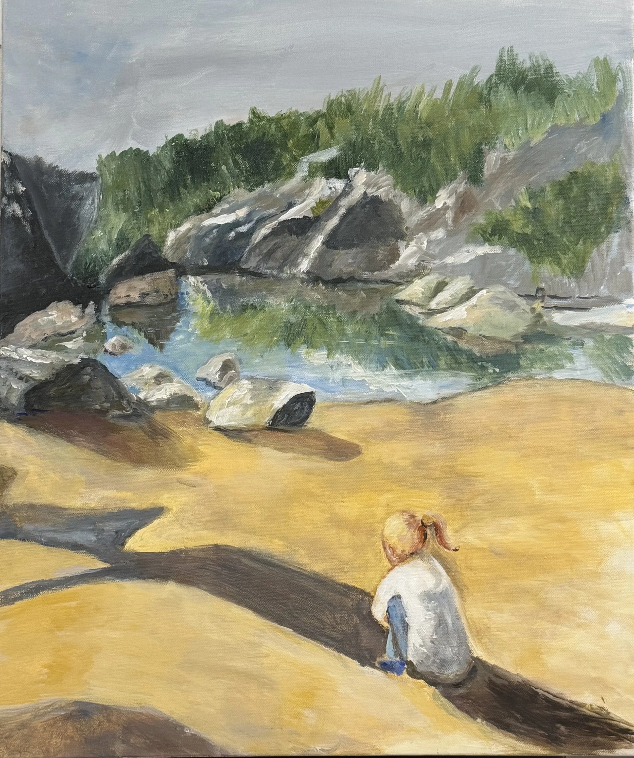 Alone on a Rocky Beach. 16 x 20 Acrylic on Canvas