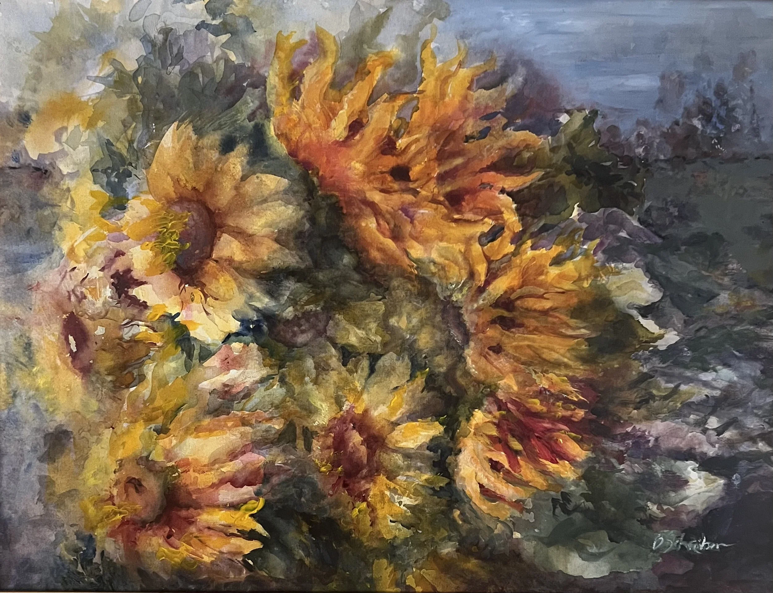 Shaken Sunflowers 20 x 24 Acrylic on Canvas framed
