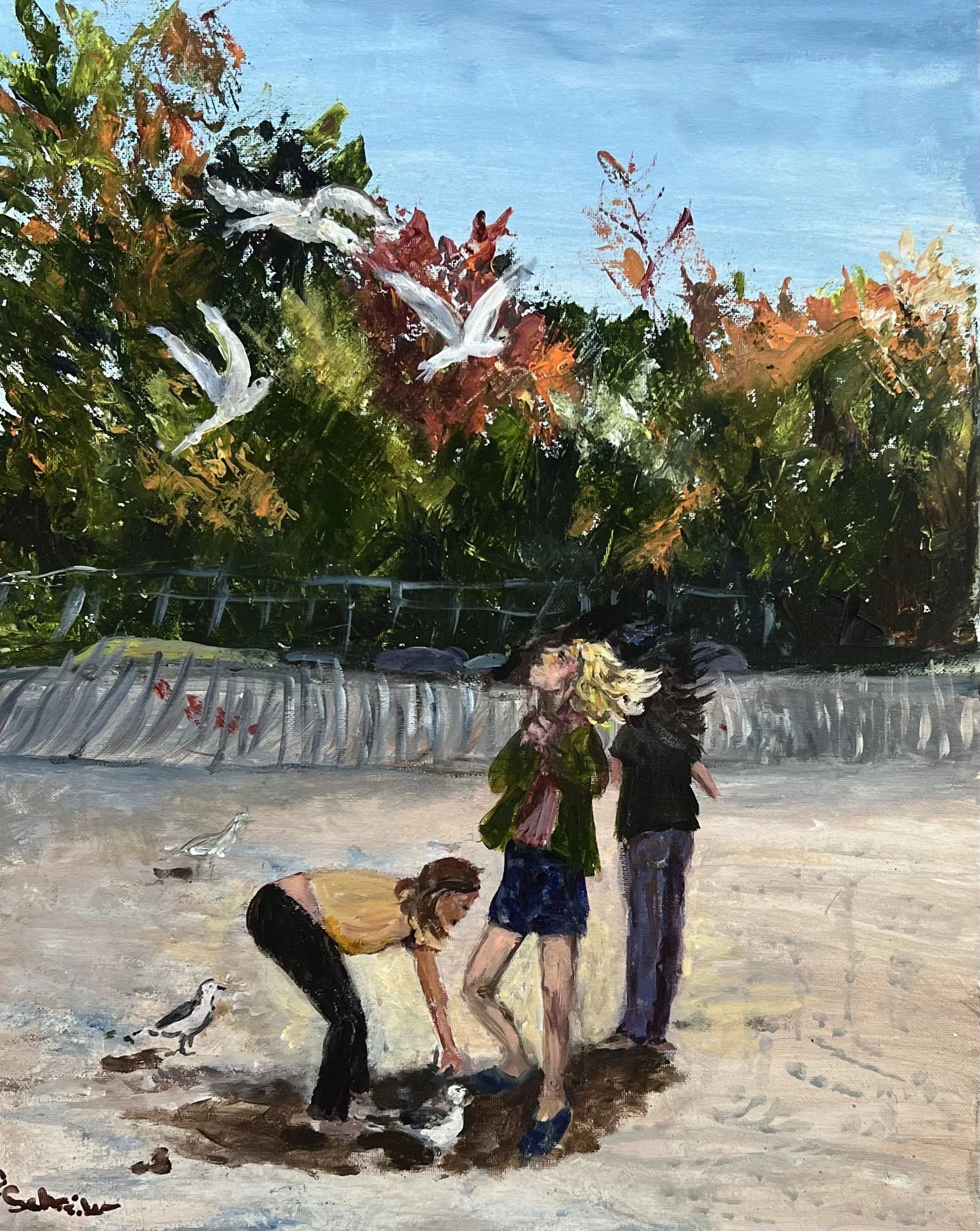 Chilly Sea Walk 16 x 20 Acrylic on Canvas sold